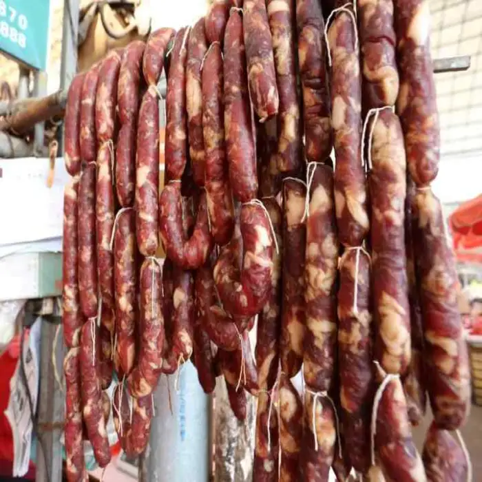 The machine has a large capacity of 15 liters, allowing for high-volume sausage production.