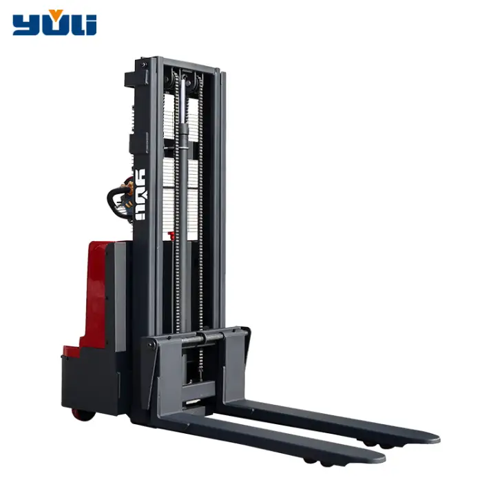 The electric stacker is equipped with a 0.75 KW driving motor and a 2.2 KW lifting motor.