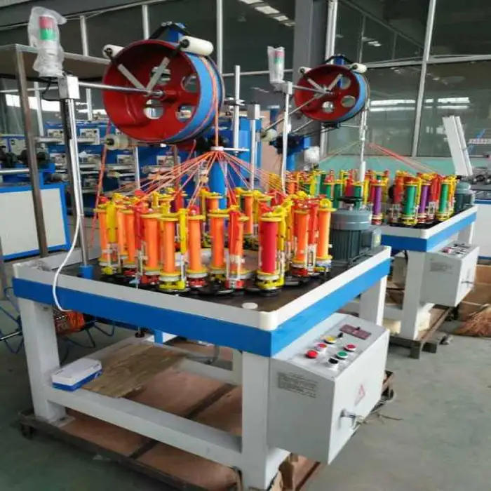 The machine features 16 spindles, allowing for faster production of shoelaces.