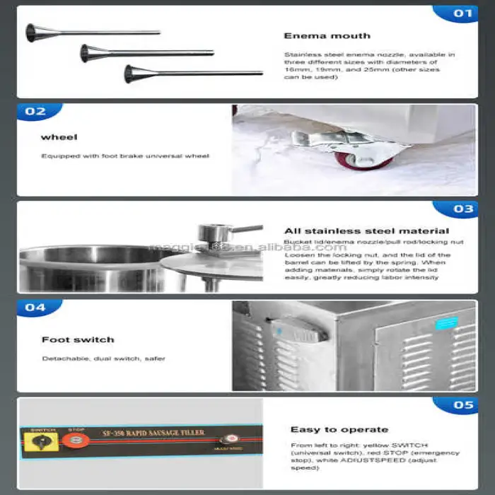 You can make flavored sausages, grilled sausages, cured sausages, and skewered sausages with this machine.
