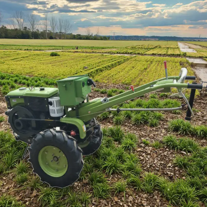 This machine can be used for ploughing fields, tilling soil, planting crops, transporting materials, and maintaining farm equipment.