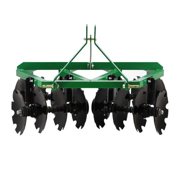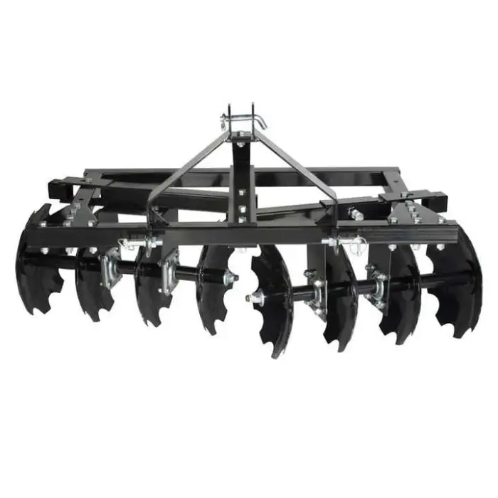 The 1BJX Disc Harrow is designed for use with tractors and can be easily attached using a 3-point mounting system.