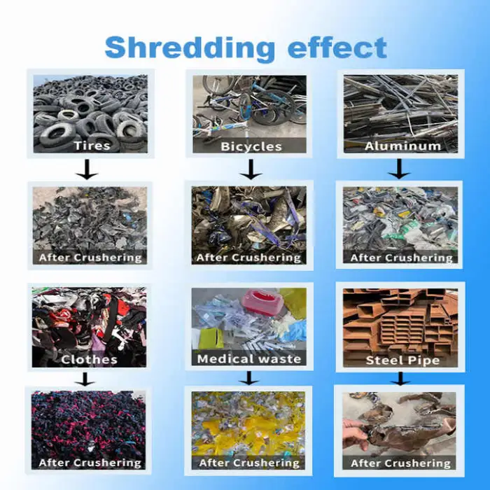 It can process a wide range of materials including stainless steel, brass, copper, alloy, carbon steel, aluminum and general scrap metal. It is also suitable for plastics, rubber, wood and tires in many applications.