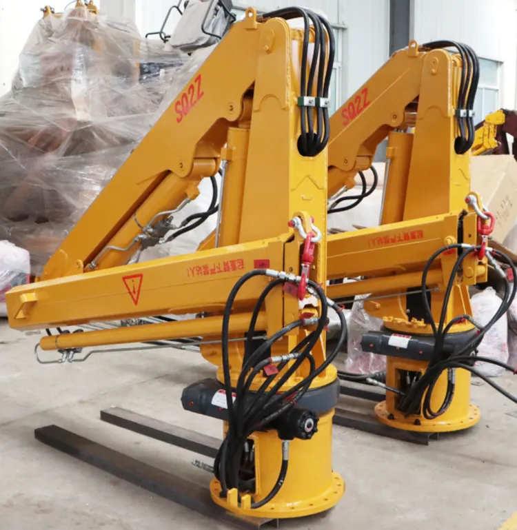 The 2 Ton Marine Hydraulic Knuckle Boom Crane is perfect for small boats, work boats, and yachts. This sturdy crane is designed to lift heavy loads with ease. Its folding arm makes it compact and easy to store when not in use. With a lifting capacity of up to 2 tons, this crane is ideal for various marine applications.