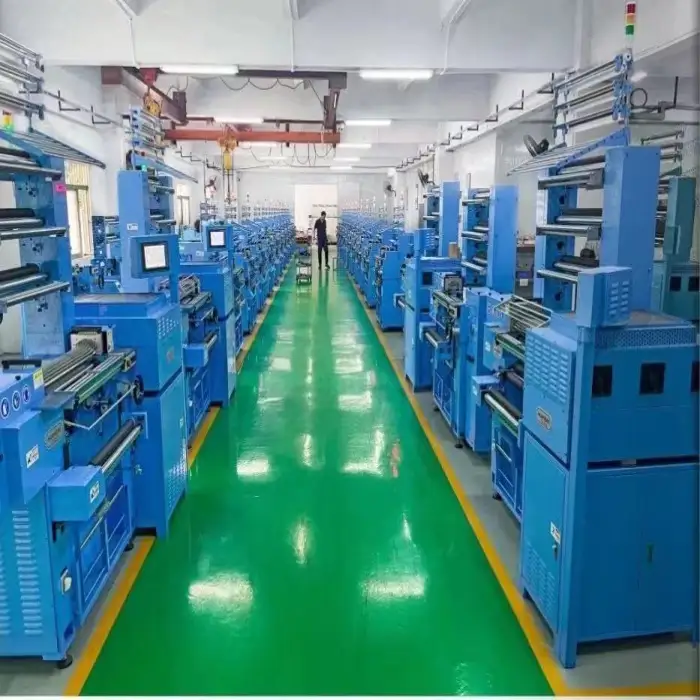 The machine is designed to work with various yarns suitable for producing belts, underwear, and elastic bands.