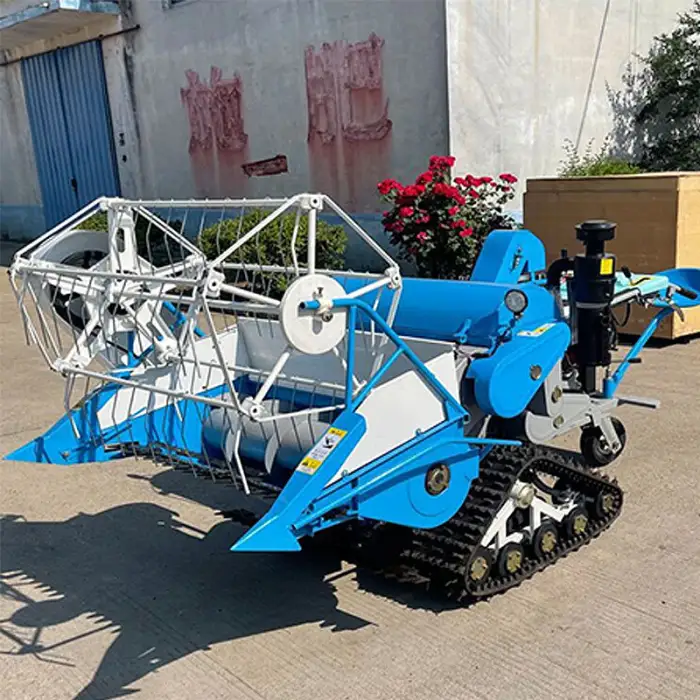 This machine is suitable for harvesting both rice and wheat.