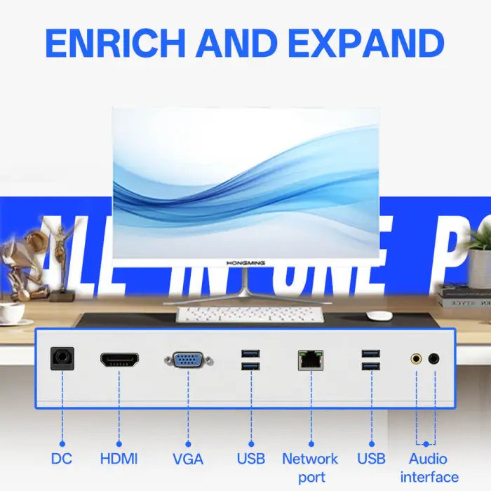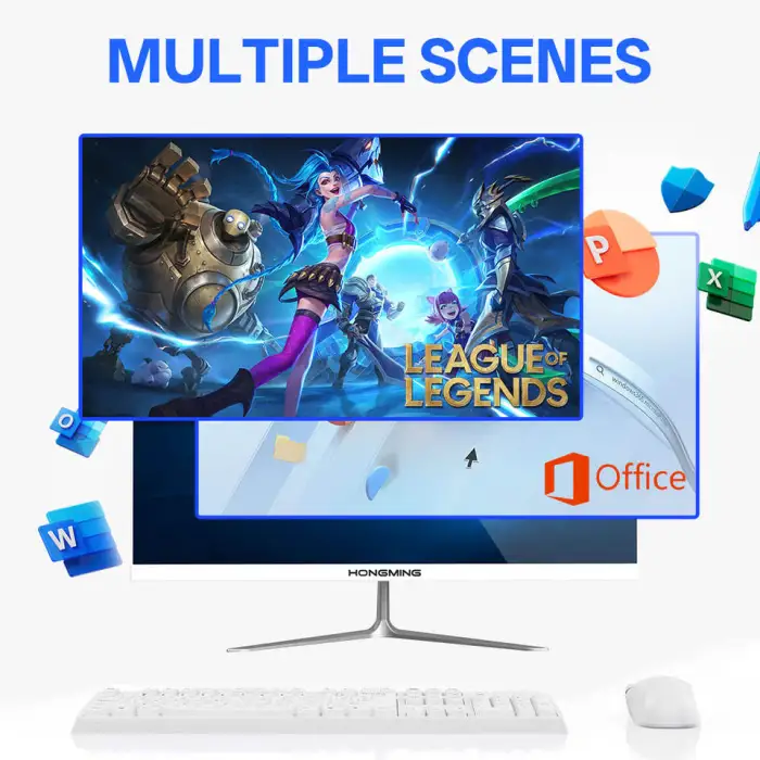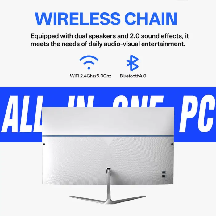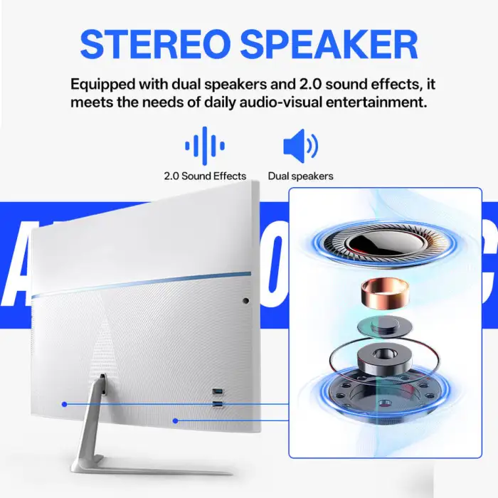 2025 All-in-one desktop computer with a 21.5/23.8/27-inch full-view screen in black and white.