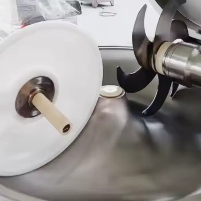 Always isolate power before servicing, never reach into the bowl while blades rotate, wear cut-resistant gloves when handling blades, ensure the machine is grounded, and follow any emergency-stop and lockout/tagout procedures in the manual. Verify the machine’s safety features with the supplier.