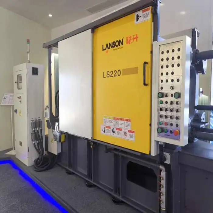 This is a 220‑ton cold chamber die casting machine (LANSON 220T) designed for high clamping force suitable for medium to large aluminum alloy castings.