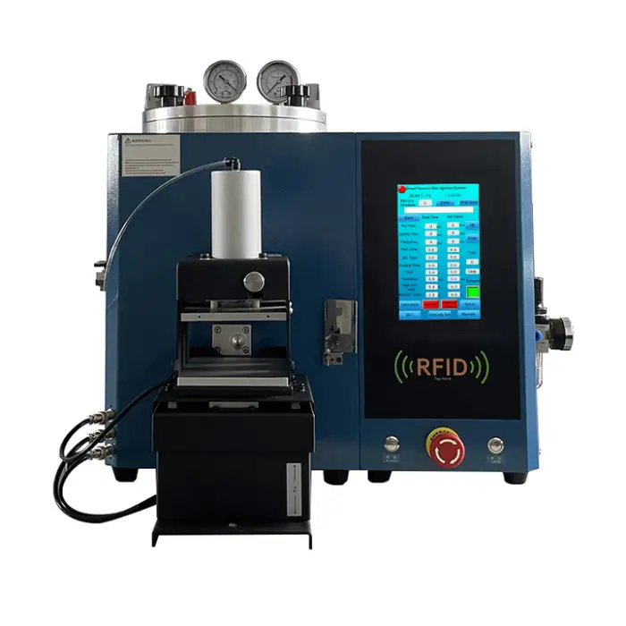 The vacuum timer allows for better control during the injection process, with a timer setting ranging from 0 to 99.9 seconds.