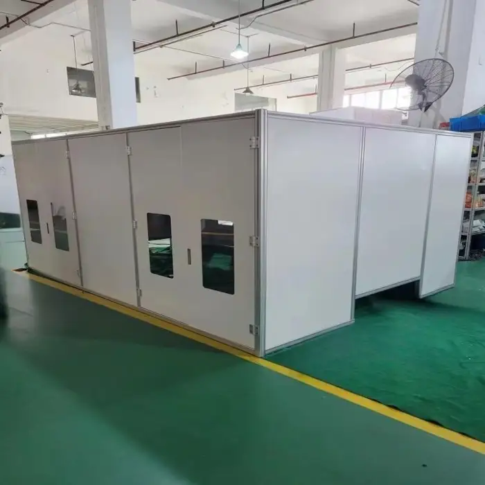 The machine is constructed from durable industrial aluminum profiles, ensuring longevity and robustness for continuous use.