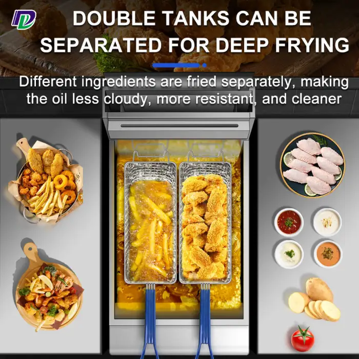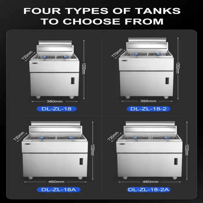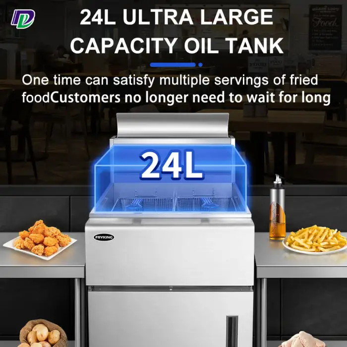 The fryer is available in three capacities: 24L, 28L, and 50L.
