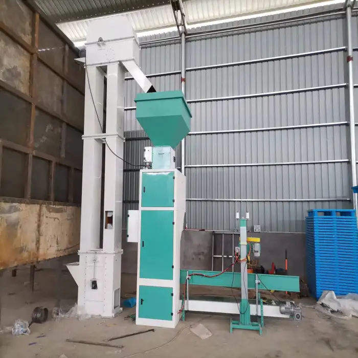 Regular maintenance includes routine cleaning of hoppers and chutes, checking/adjusting sewing heads and seals, lubricating moving parts per the manual, inspecting electrical and pneumatic connections, and replacing wear parts (belts, knives, sewing needles) as needed.