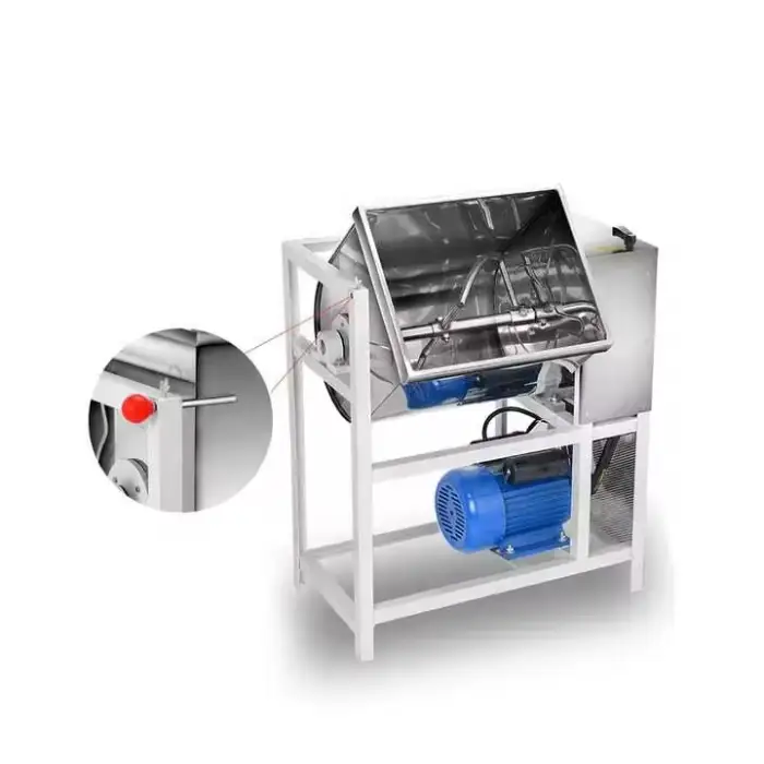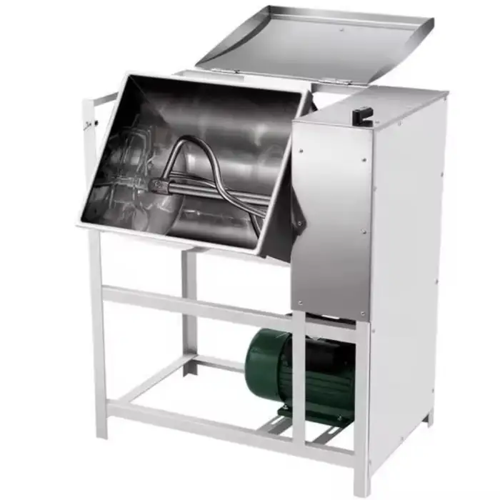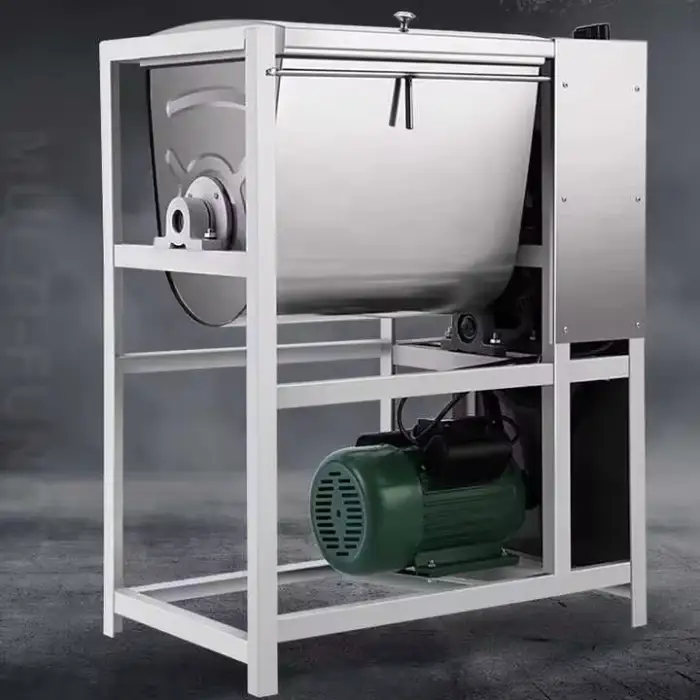 The description does not give a decibel rating. Industrial mixers produce noticeable noise during mixing. If noise level is a concern, request noise specifications from the supplier or plan to install the unit in a dedicated or well-ventilated area.