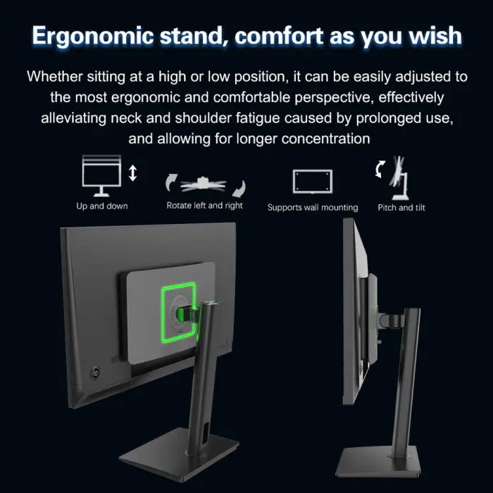 The monitor features a DP interface for connecting to various devices, ensuring compatibility with most PCs and laptops.