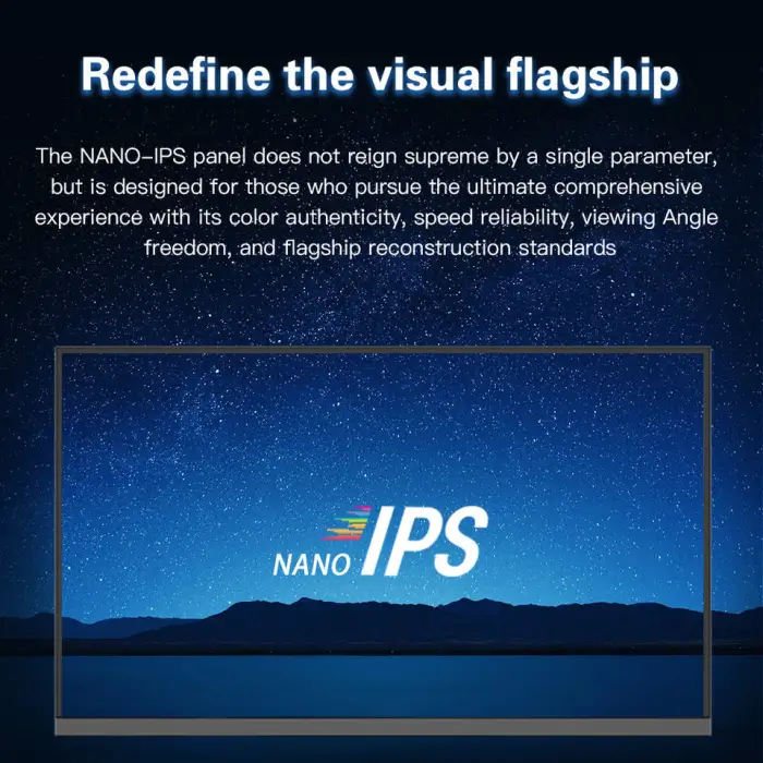 The monitor uses NANO IPS panel technology, which offers wide viewing angles and rich, vibrant colors.