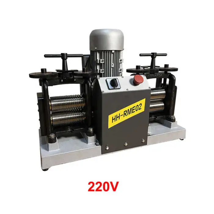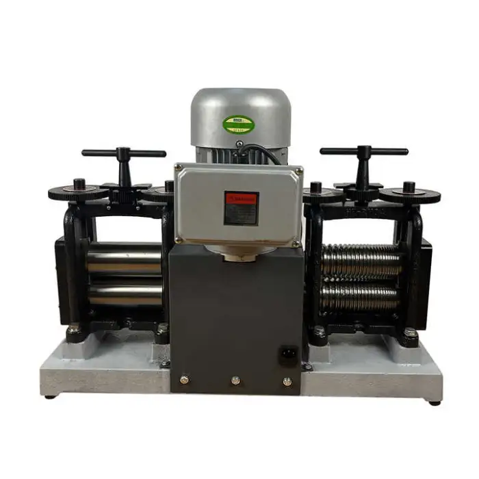 This double-head electric rolling mill is designed for jewelry making tasks such as flattening, shaping and texturing metal sheet and wire. It's suitable for creating and resizing rings, preparing metal for forming, and general jewelry fabrication for hobbyists and professionals.