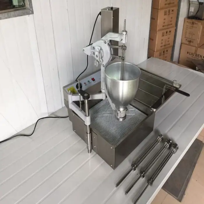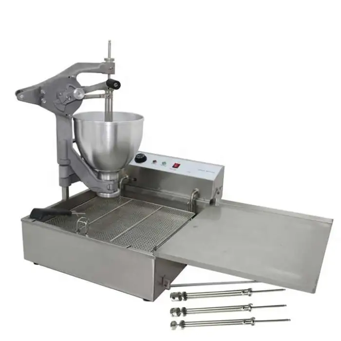 You can make churros, mochi, and donuts with the 3 Molds Stainless Steel Manual Gas Electric Fully Automatic Churro Ball Mochi Donut Fryer Machine.