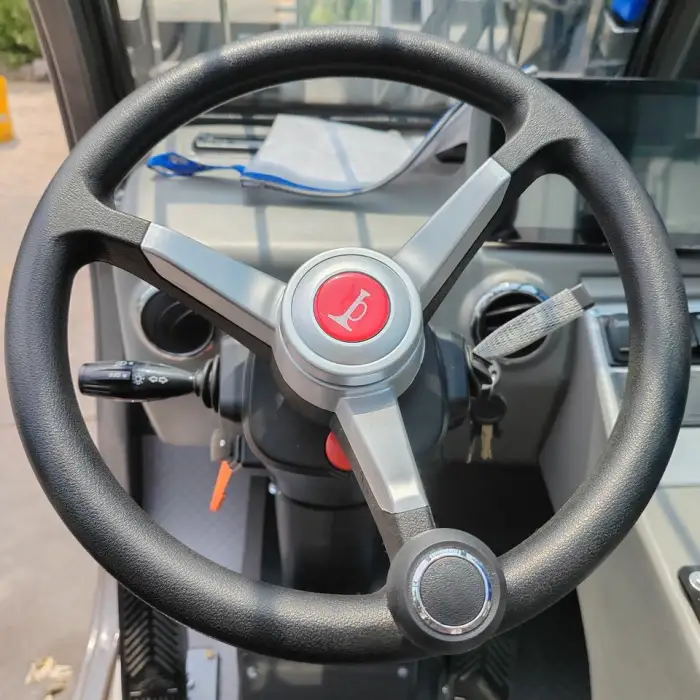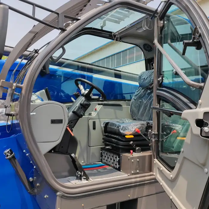 The telehandler is robustly constructed for heavy-duty tasks, making it ideal for construction sites.