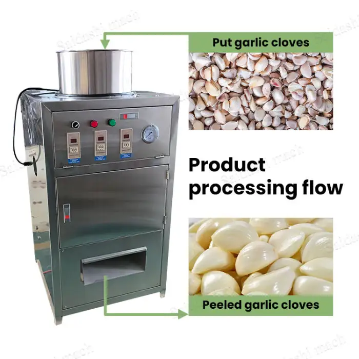 The machine uses air pressure peeling technology to effectively remove the skin from garlic cloves.