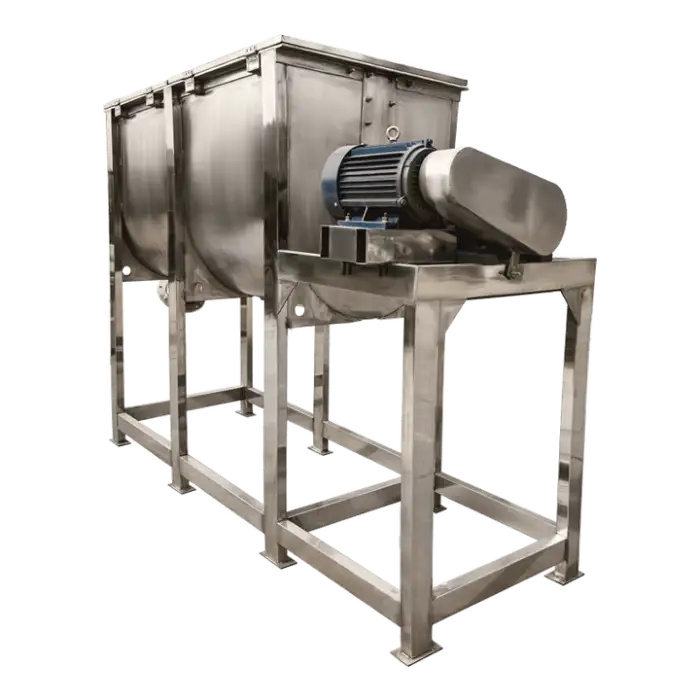 Yes — the horizontal ribbon design made in stainless steel is commonly used in food and cosmetics. Food‑grade construction (smooth internal finish, sanitary welds) and optional polished surfaces are available. If you require pharmaceutical‑level certification or GMP documentation, please specify so we can supply appropriate finishes and documentation.