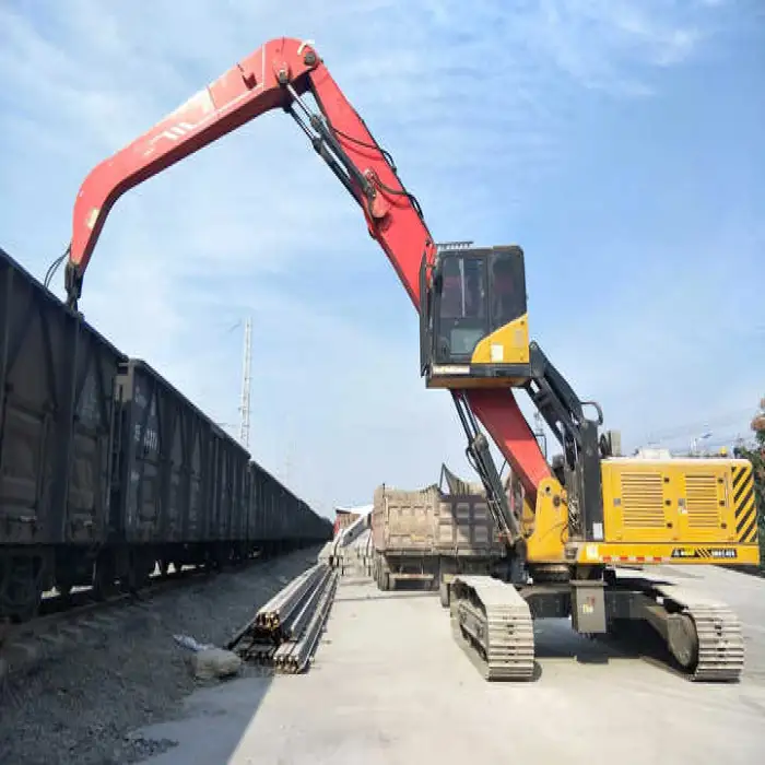 The 35ton Crawler Material Handling Machine SMHC35V has a weight capacity of 35 tons.