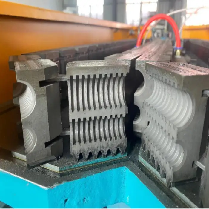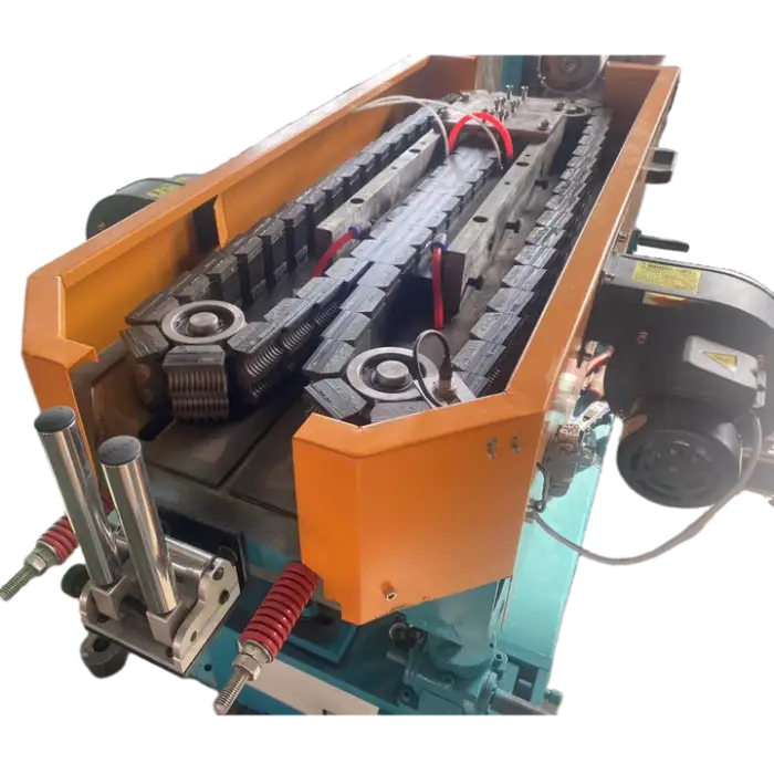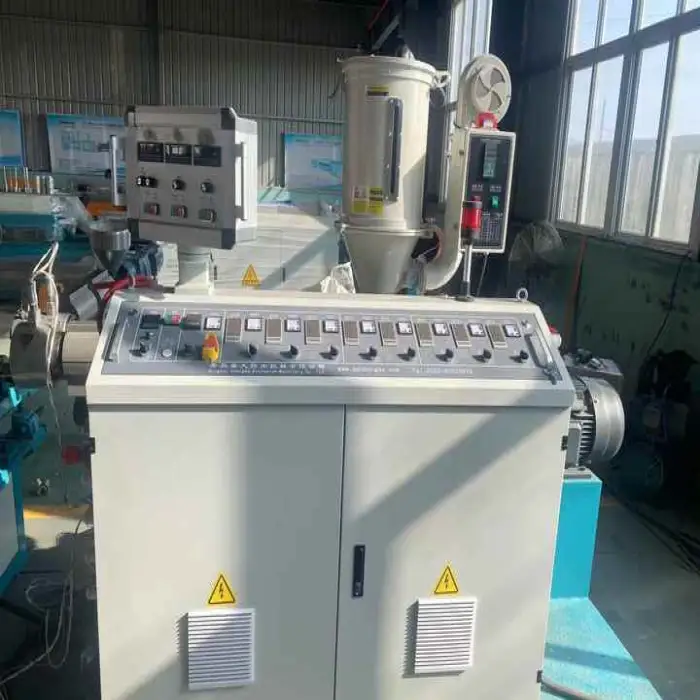 The machine is used for manufacturing plastic pipes, creating profiles, producing wire threaded tubes, and more.