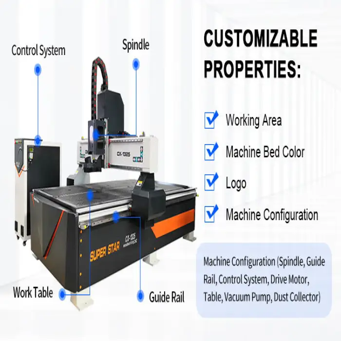 The working table size of the CNC router is 1300 × 2500 mm, providing ample space for large projects.