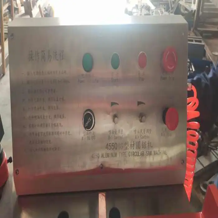 The 455al is a pipe cutting machine designed for industrial metal cutting, optimized for aluminum, copper and brass pipes. It's used in manufacturing, construction, plumbing, automotive parts fabrication and metalworking shops.