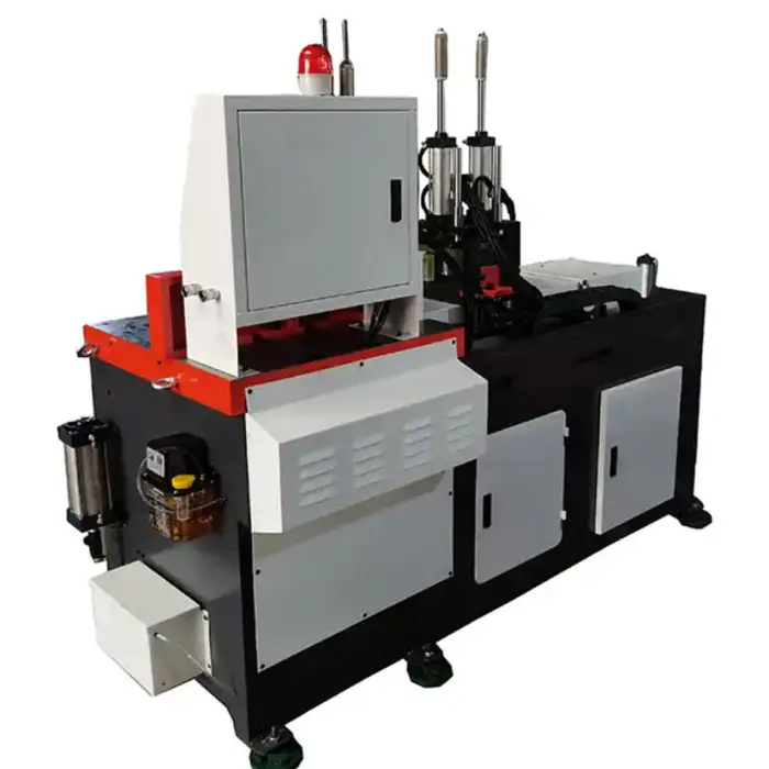 The machine is suitable for cutting various materials including PVC, plastic, brass, copper, and aluminum alloy.