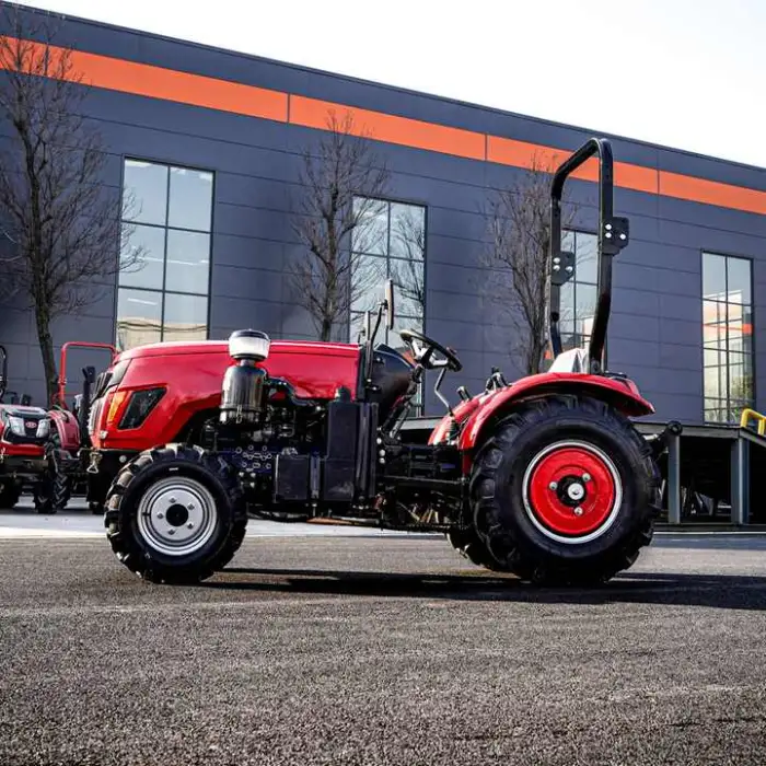 The tractor features a 4WD (four-wheel drive) system for improved traction and stability.