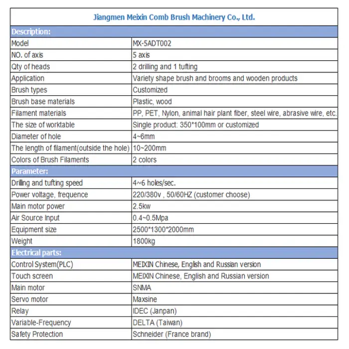 Key features include high-speed production, automatic operation, 5-axis precision, and durable components.