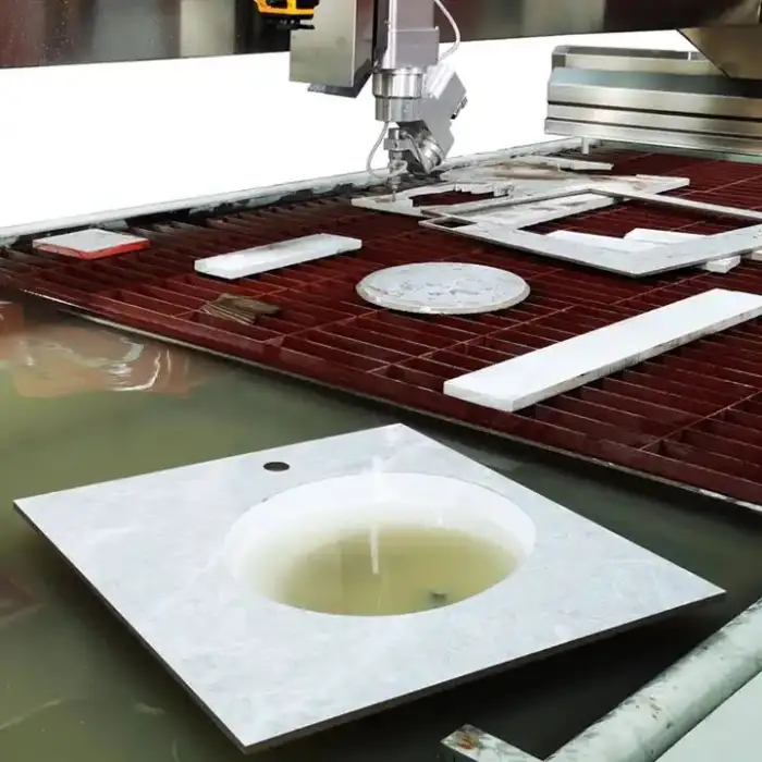 The 5 Axis 3D Waterjet Machine is designed to cut materials such as marble, granite, and glass.