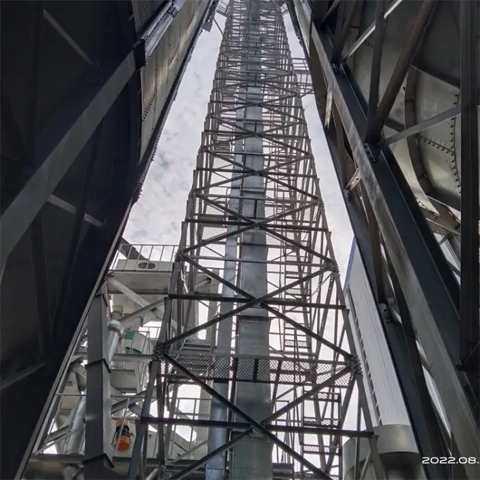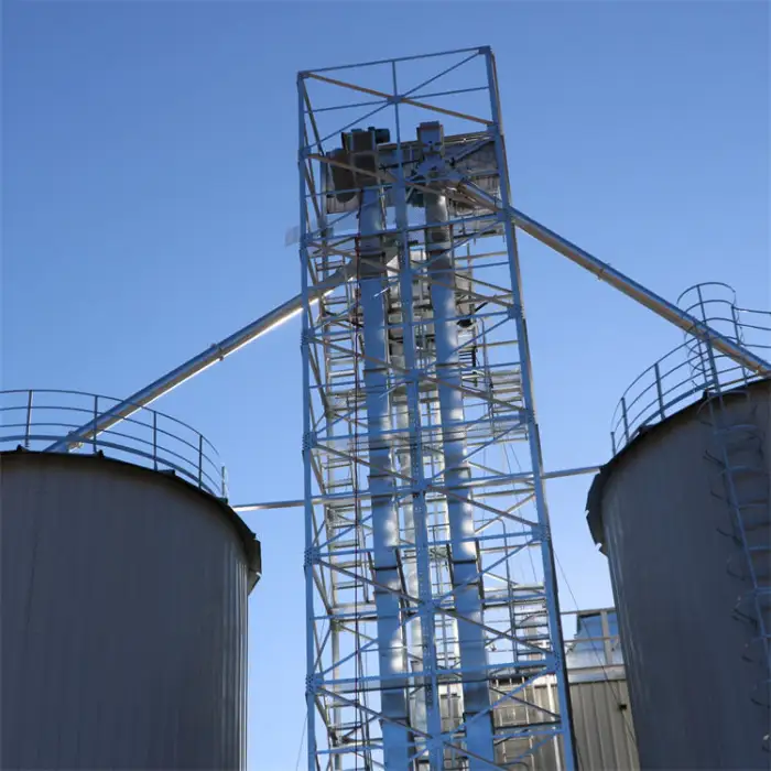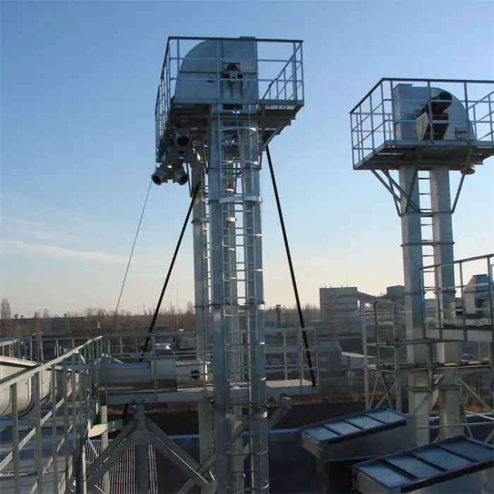 This bucket elevator is designed for transporting grain, seeds, and powder.