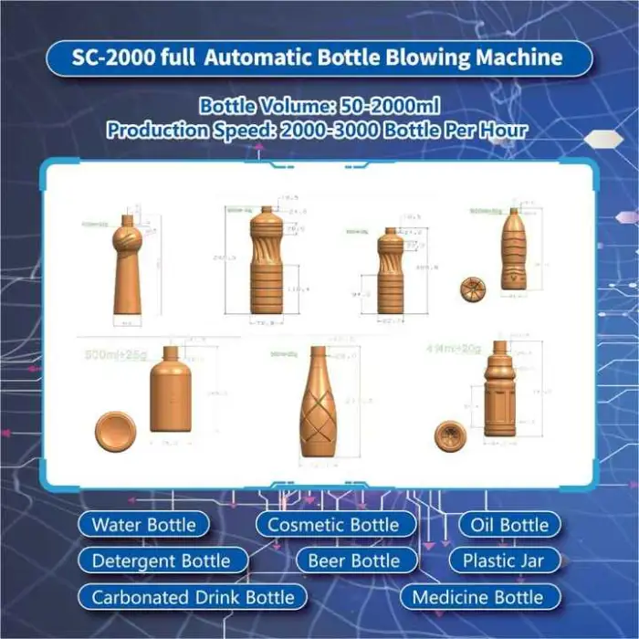 The machine can produce bottles with a maximum volume of 2000ml.