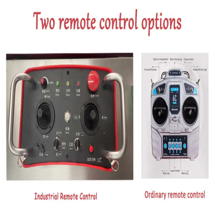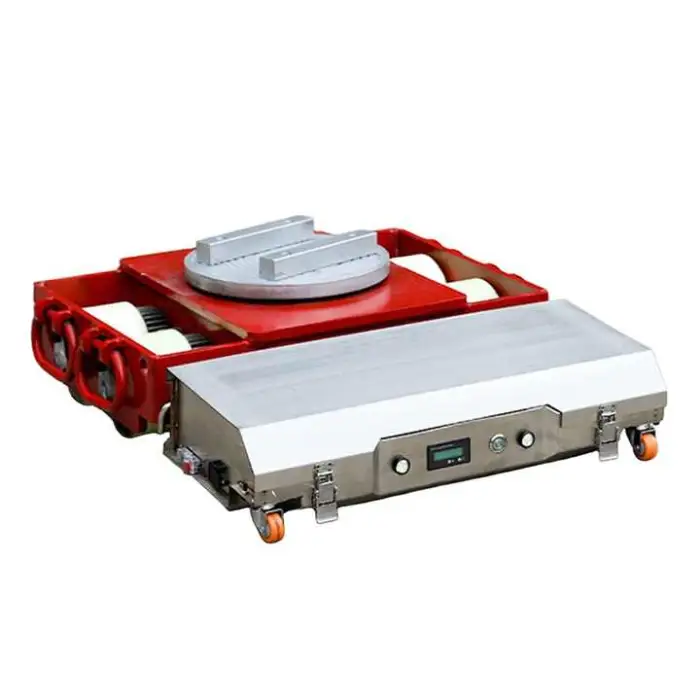 The trolley includes a robust design for stability and is controlled remotely to maintain a safe distance during operation.