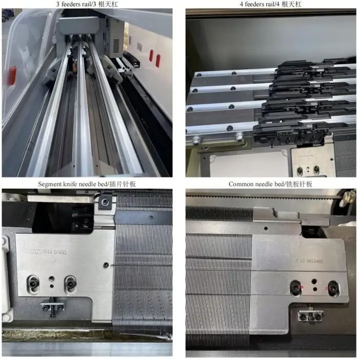 Core components include motor, bearings, gears, engine and gearbox. Recommended spare parts: needles/carriage parts, extra bearings, drive belts/gears, motor brushes (if applicable) and fuses. Exact spare part list should be confirmed with the supplier.