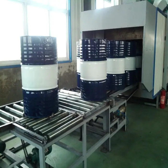 This production line can manufacture drums with a capacity range from 180 liters to 220 liters.