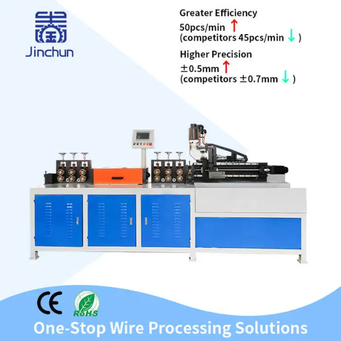This machine is ideal for various industries including manufacturing of wire products, construction, automotive wiring applications, crafting, and metal fabrication.