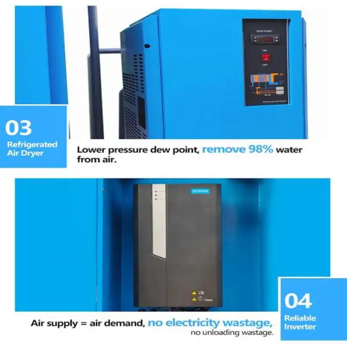 The compressors are available in three power options: 7.5kw, 15kw, and 22kw.