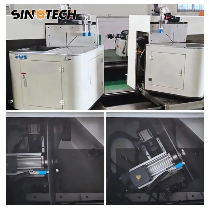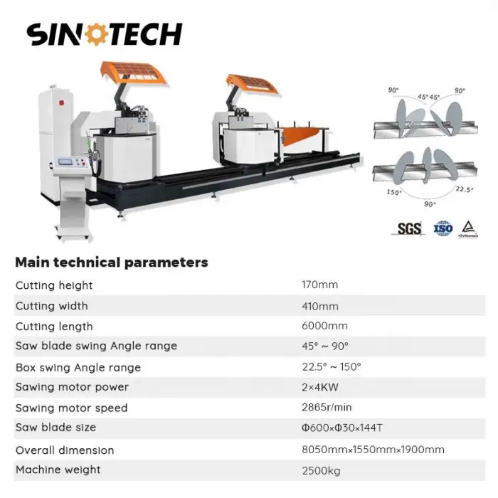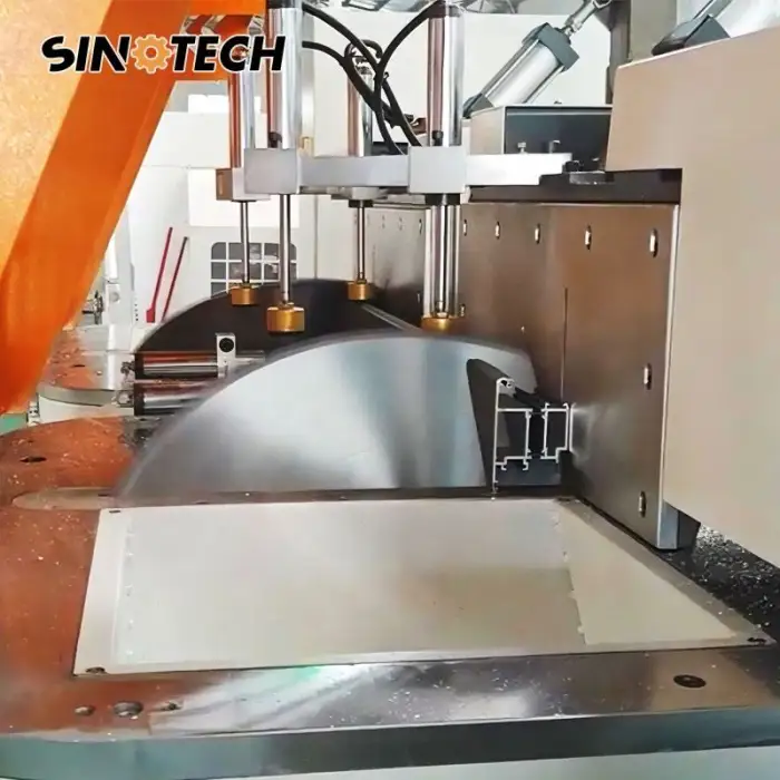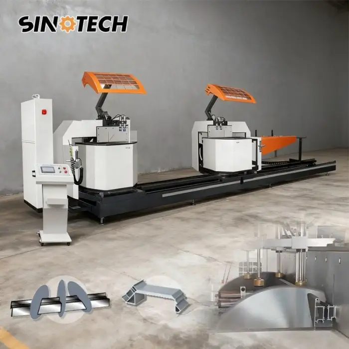 This machine is designed specifically for cutting aluminum profiles used in curtain wall systems and other industrial applications.