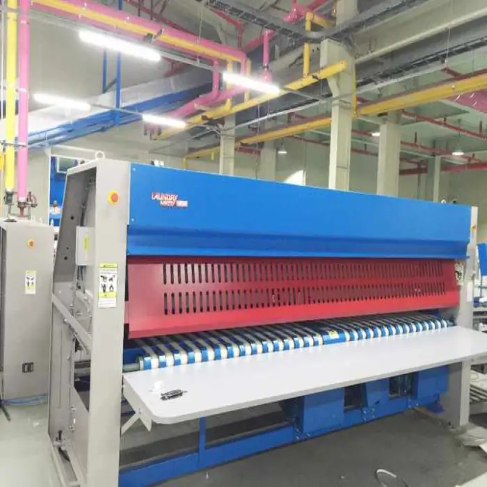 It is used for ironing linens in hospitals, finishing processes in garment manufacturing, and large-scale laundry operations.