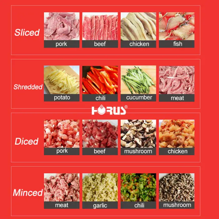 You can slice fresh meat and vegetables with the Horus HR-90 Meat Shredder.