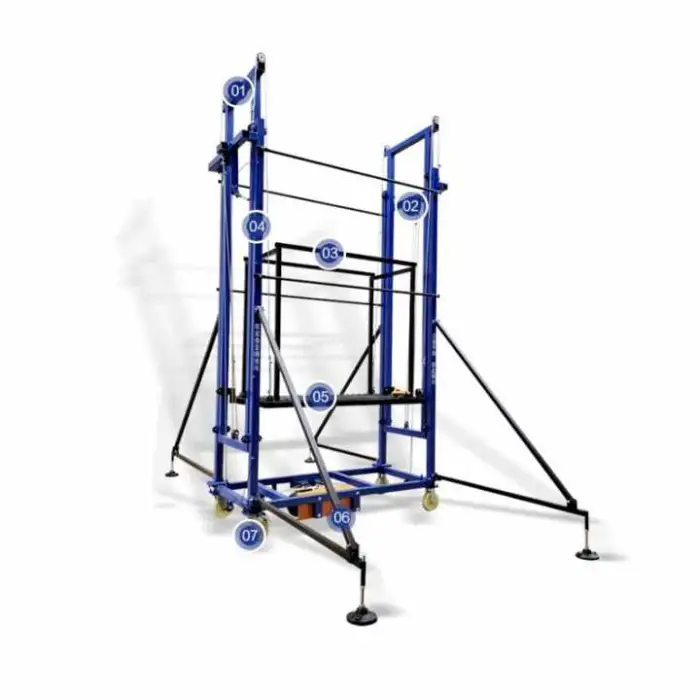 This scaffold lift can be used to lift various materials, including construction materials, heavy fabrics, and equipment.