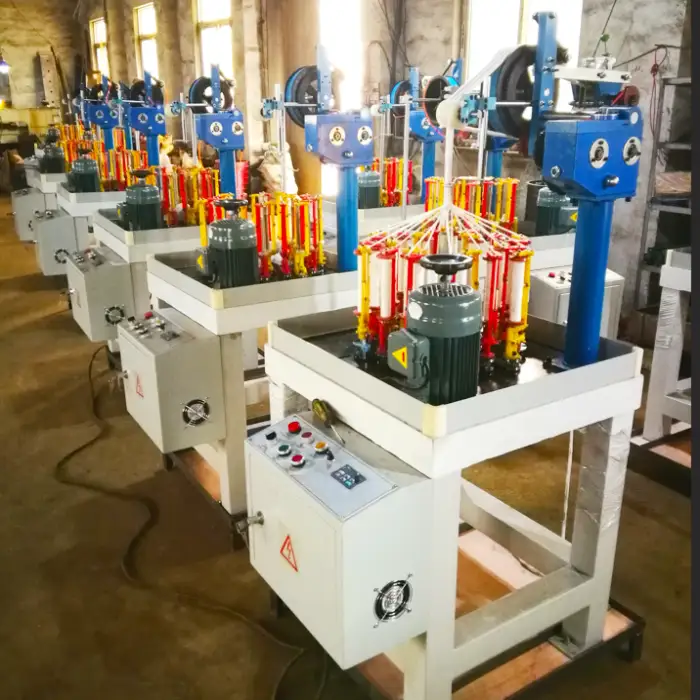 The 90 Series Knitting Braiding Machine can handle PP multifilament, cotton, polyester, and nylon.