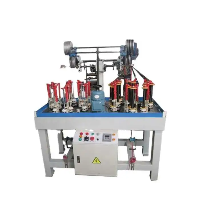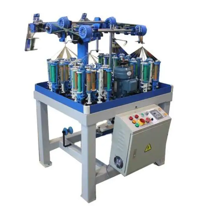 The machine is designed for braiding fabrics, ropes, cables, and other decorative items.