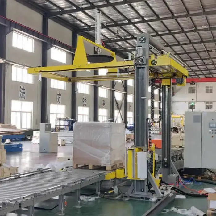 The machine can wrap between 20 to 40 pallets per hour, depending on the load and settings.
