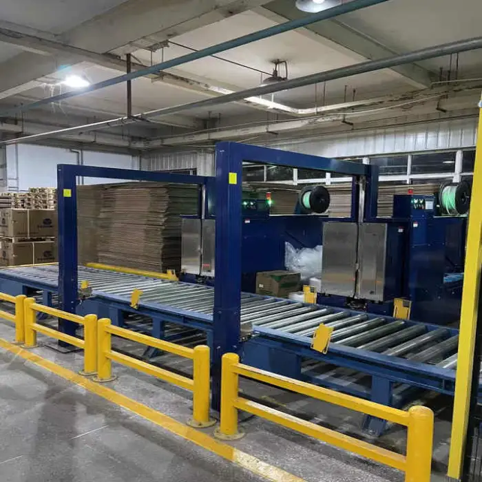 The machine can wrap a variety of products including food, beverages, chemicals, machinery, hardware, and apparel.