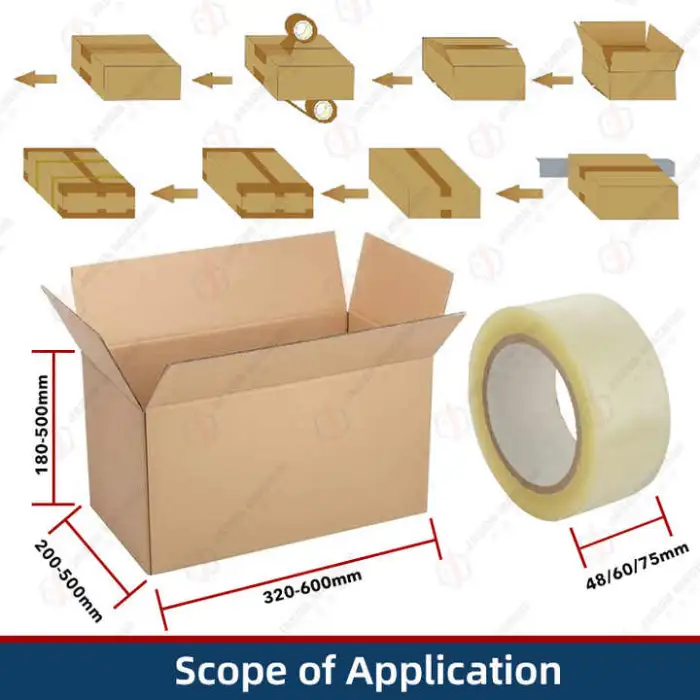 Sealing is done with adhesive tape. BOPP packaging tape and other pressure-sensitive adhesive tapes commonly used for carton sealing are suitable; contact the supplier for specific tape width compatibility.