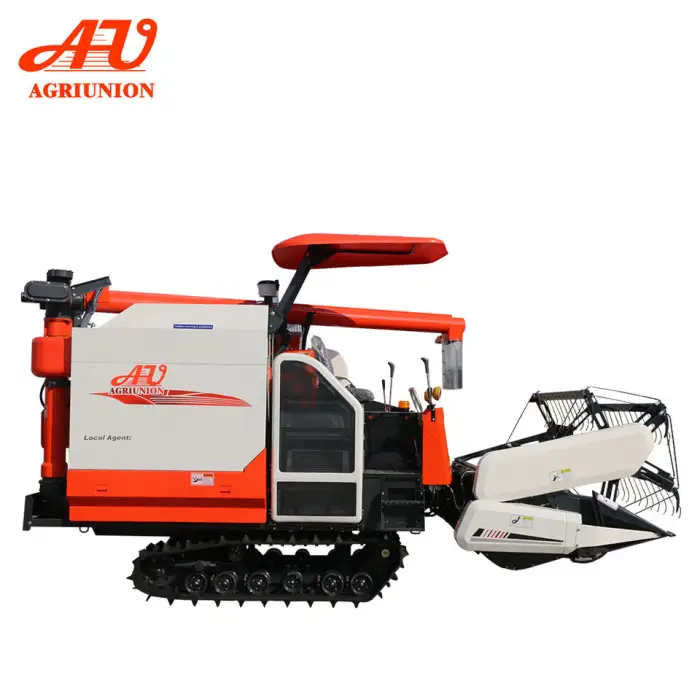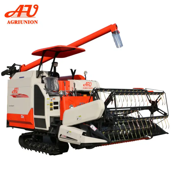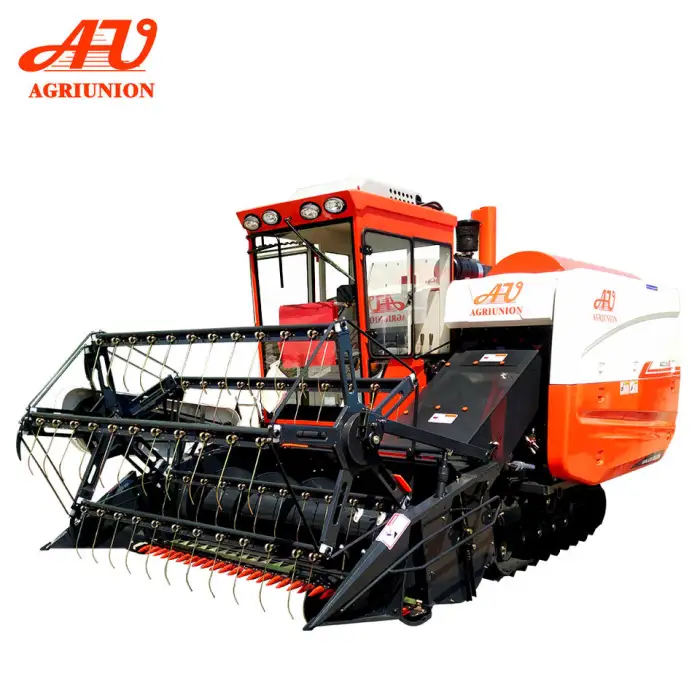 The AGRIUNION Paddy Rice Wheat Straw Bales Harvester Machine is designed to handle various crops including rice, wheat, soybeans, and corn.
